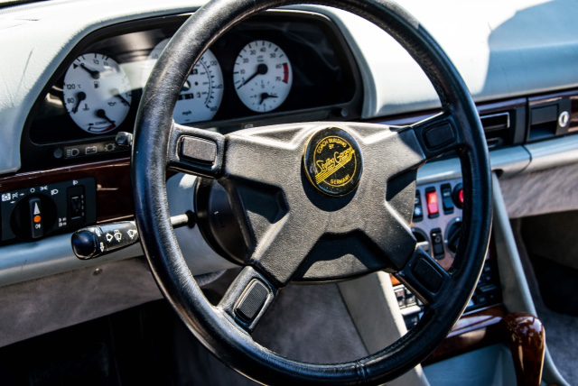 Der Ausflug nach Hofheim wird sich lohnen, da Ralf einige seltene Schätzchen beherbergt. Darunter ein weiterer 500 SEC als König Widebody, ein ultraseltenes 500 SEC AMG Widebody als SGS Cabriolet, den originalen 560 SEC Dienstwagen von Designpapst Bruno Sacco, einen sehr seltenen W 124 als AMG E 32. Ein weiteres Exponat aus der W 124 Baureihe ist ein 300 CE-24 3.4 AMG Cabriolet mit einer mintgrünen Vollederausstattung von Designo. Aber auch die kleine W 201 Baureihe wartet mit gleich 3 selten Fahrzeugen auf. Zum einen ein 190 E 2.3-16 in der exklusiven Breitbauversion von Schulz-Getzke mit in den Kühlergrill versenkten Scheinwerfen, ein ebenfalls von SGS umgebautes 4-türiges 190 E St. Tropez Cabriolet im Stil eines Baur-TopCabriolets mit feststehenden Türkanten und zu guter letzt noch den 190 CityFun, ein Einzelstück als Targa auf einem verkürzten Chasis.