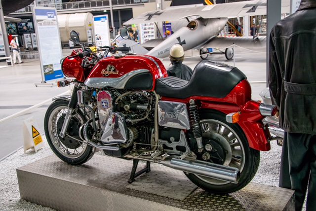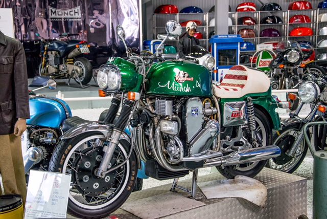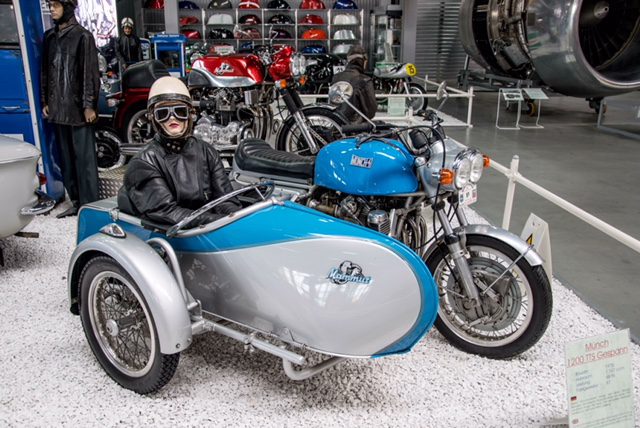 Im Technik-Museum in Speyer gibt es aktuell eine Sonderausstellung in der sehr viele Münch Motorräder zu sehen sind. Neben der offiziell TT genannten Mammut auch eine Rennmaschine von Rickman und ein seltenes Gespann.